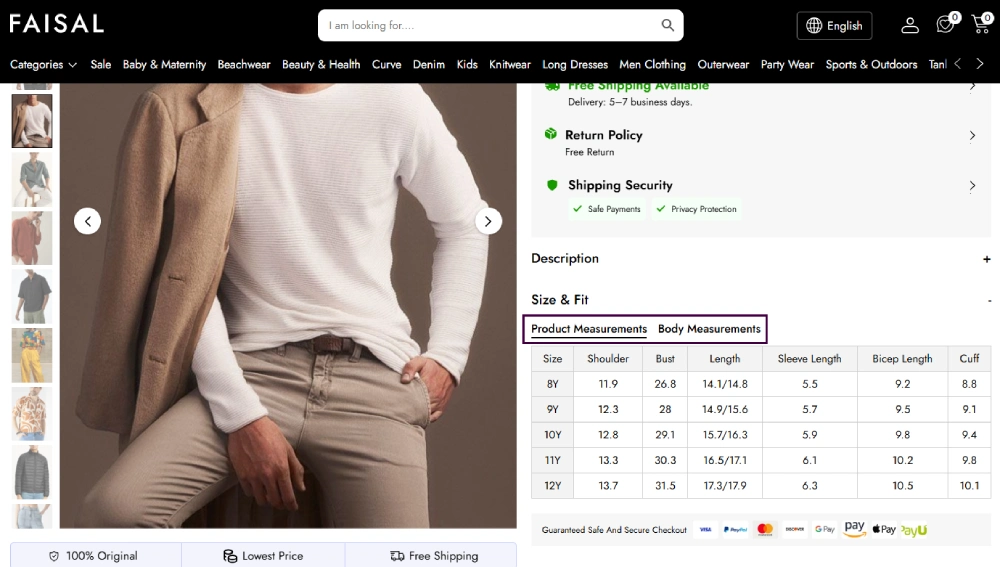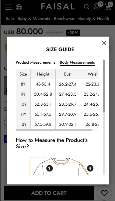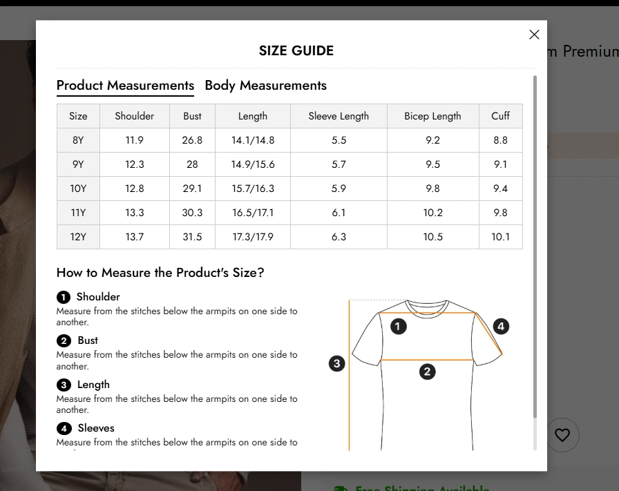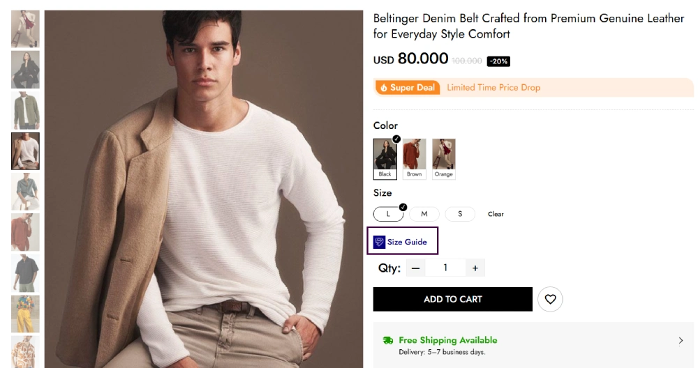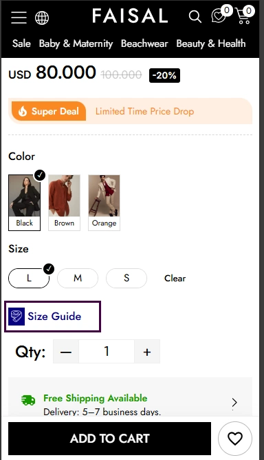 2. Where is the size guide displayed?